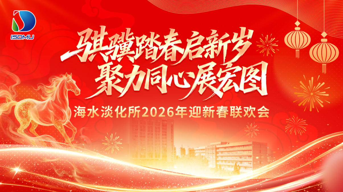 所领导新春致辞回顾了2025年“淡化人”的奋斗足迹——面对改革重任,全所上下同心攻坚,在科研攻关、成果转化等领域取得突破性进展,每一份成绩都凝聚着职工的智慧与汗水;展望2026年,海水淡化所将深入学习贯彻党的二十届四中全会精神,勇立潮头,奋力拼搏,争取实现“十五五”开门红,以“一马当先”的闯劲、“马到成功”的信念,携手书写海水利用事业新篇章。