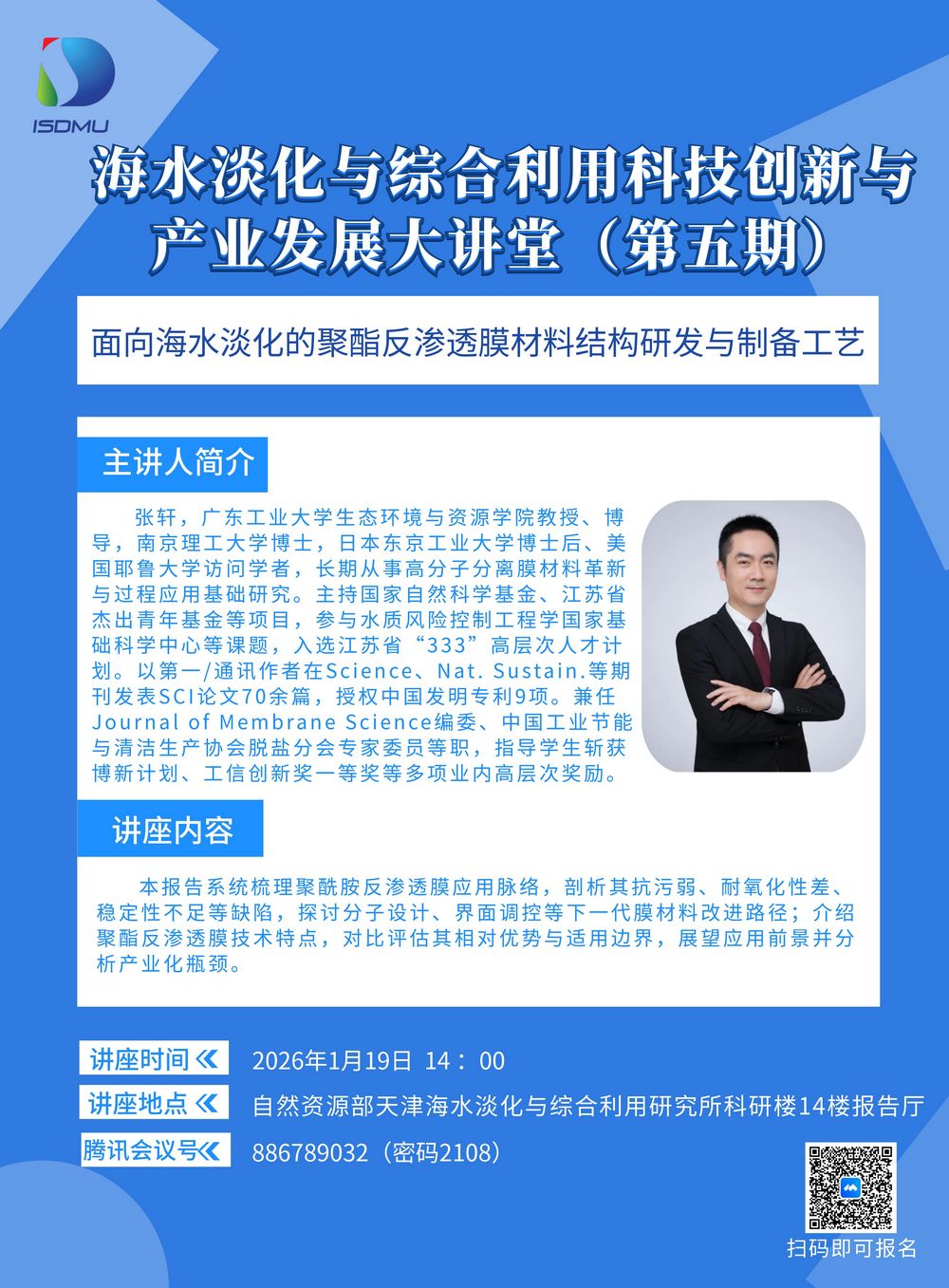 面向海水淡化的聚酯反渗透膜材料结构研发与制备工艺第五期大讲堂通知